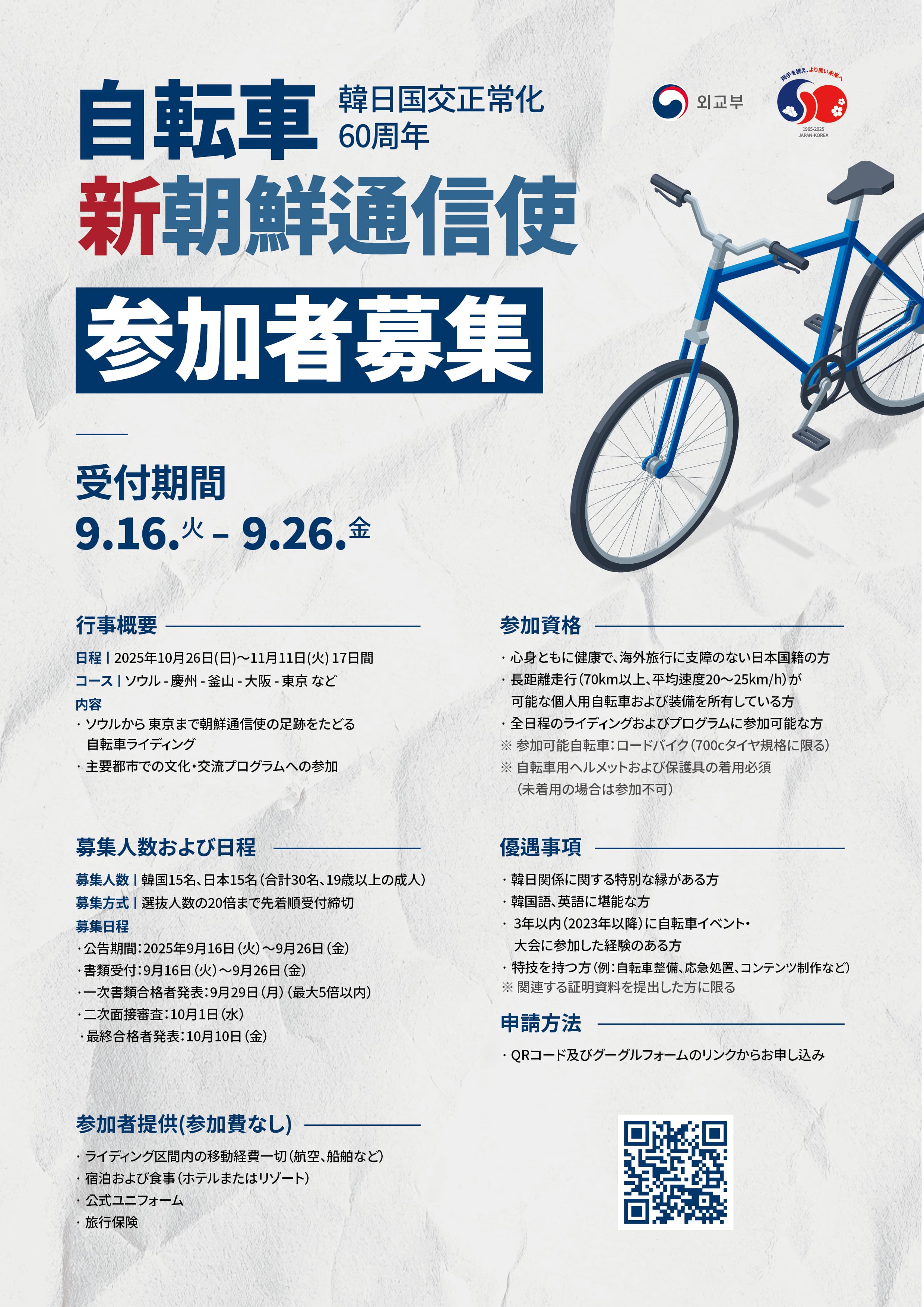 韓日外交使節団「朝鮮通信使」の道に沿って16泊17日間の自転車ライディング