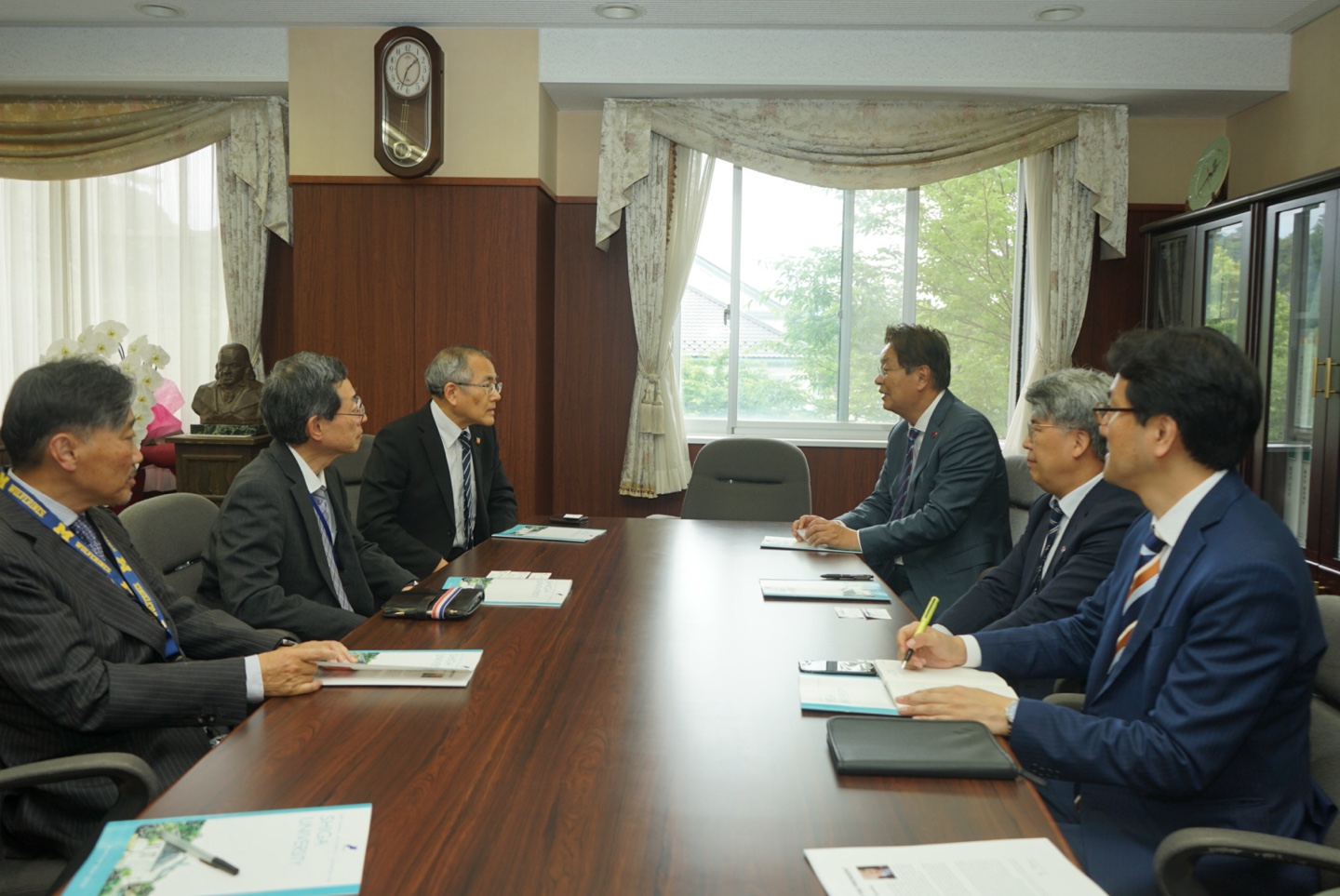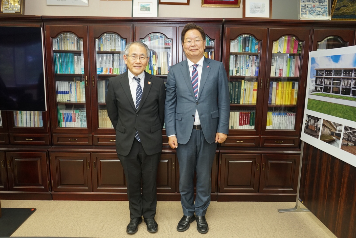 陳昌洙 総領事は6.12(木)、滋賀大学 竹村彰通 学長を表敬訪問し、韓日高等教育と韓日大学生交流について意見を交わしました。 総領事は「韓日両国の若者交流のためのインフラ構築に協力したい」と述べながら、「貴校の学生たちが交換留学などを通して韓国で学べる機会が増えることを願う」と期待を表明しました。