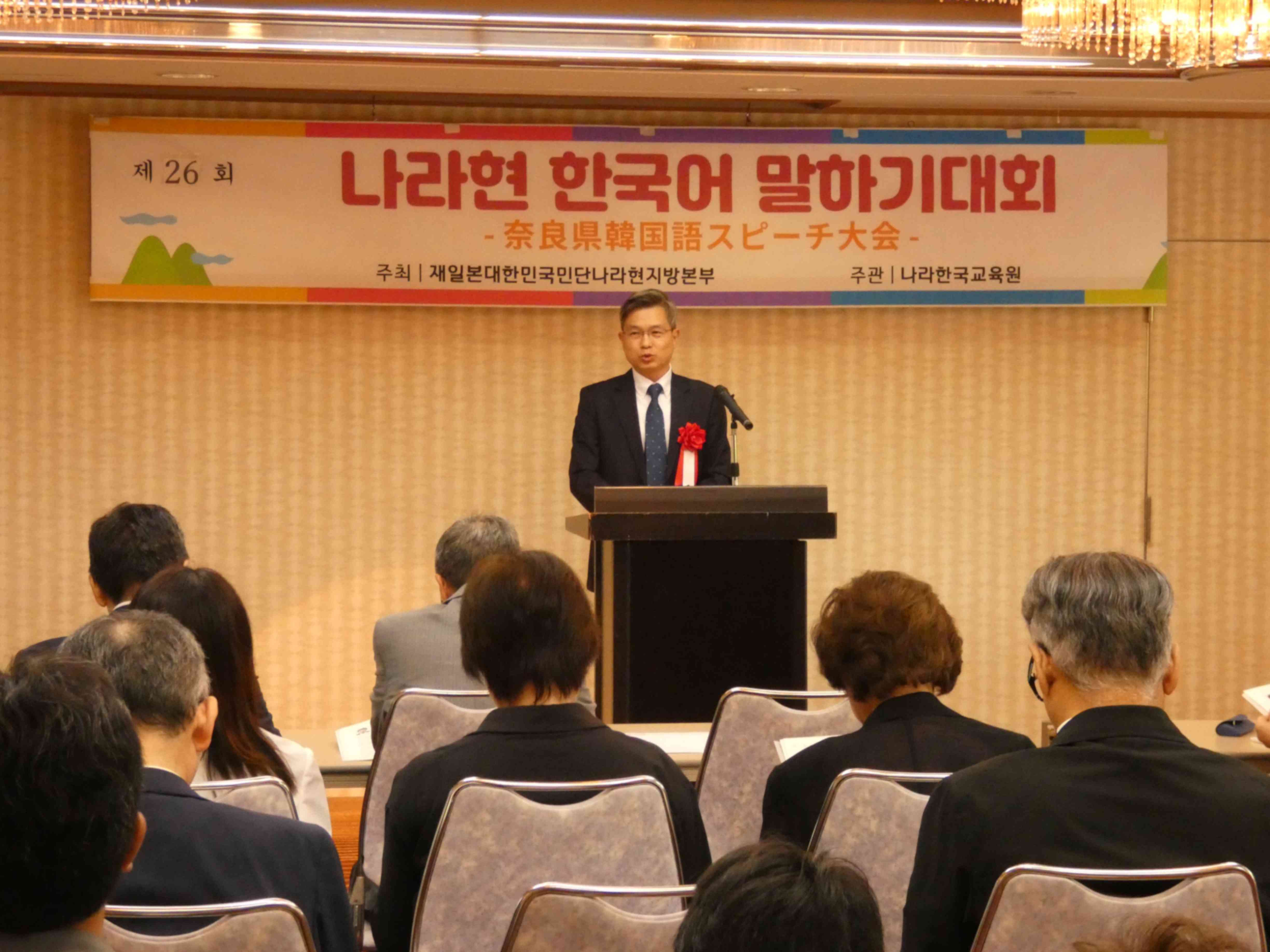 姜亮銀 教育領事は、9.13(土)、「第26回奈良県韓国語スピーチ大会」へ参席し、17名の弁士を激励しました。また、主催側である在日本大韓民国民団奈良県地方本部及び奈良韓国教育院の関係者を始め、来賓や保護者、韓国語講師など、参席者の方々へ感謝を伝えました。