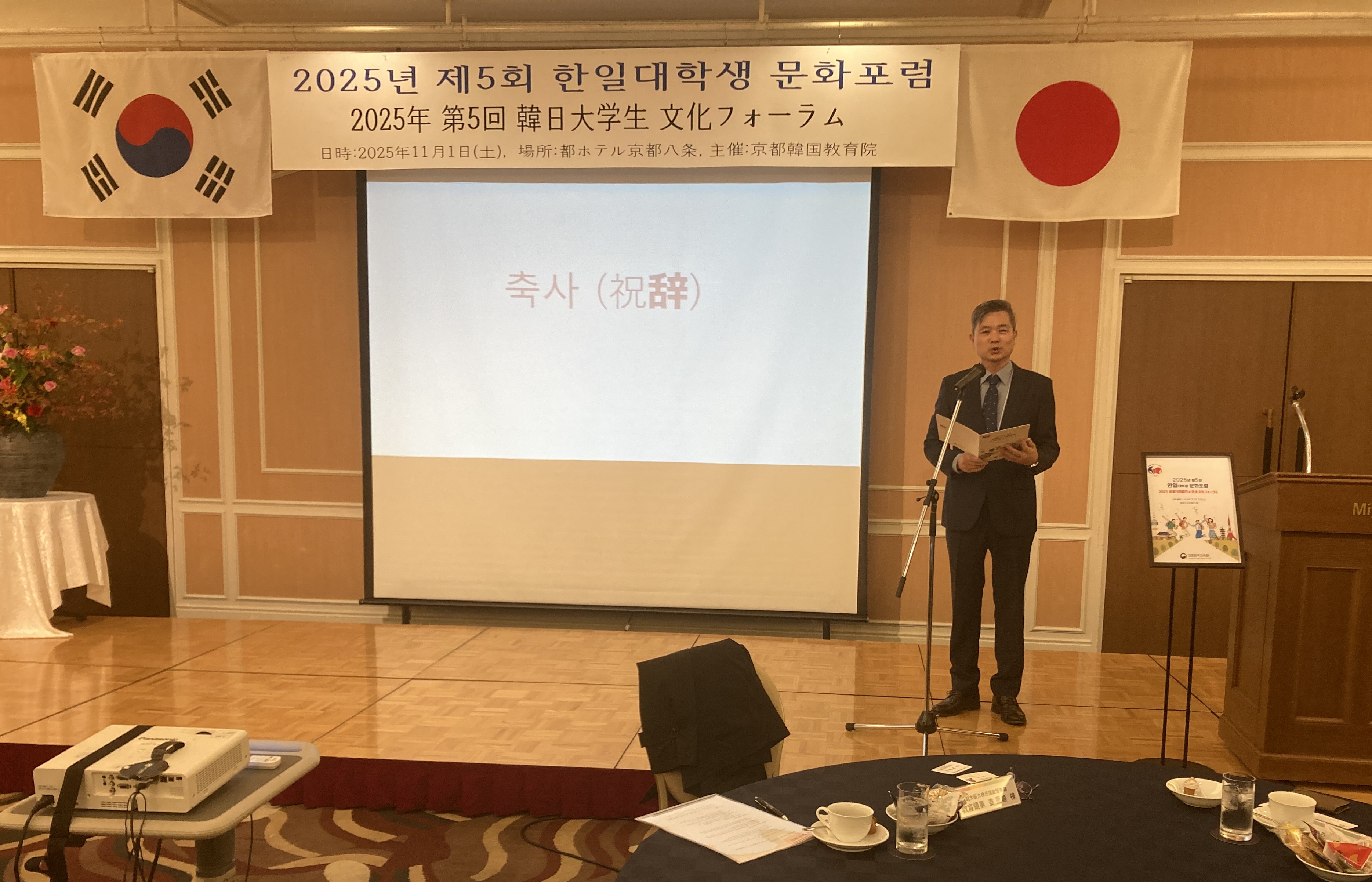 강양은 교육영사는 11.1(토), 교토한국교육원이 주최하고 우리 총영사관이 후원하는 “제5회 한일대학생 문화포럼”에 참석하였습니다. 올해로 5회째를 맞이하는 이번 문화포럼에는 간사이지역 소재 한일 대학생*과 교수, 한국교육원장과 민단 관계자 등이 참석한 가운데 성황리에 개최되었습니다.