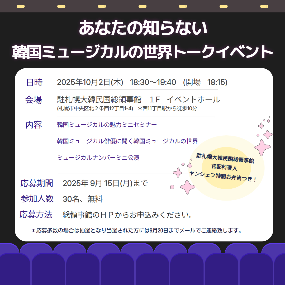 駐札幌大韓民国総領事館では韓国ミュージカルの楽しみ方、魅力を紹介するイベントとして