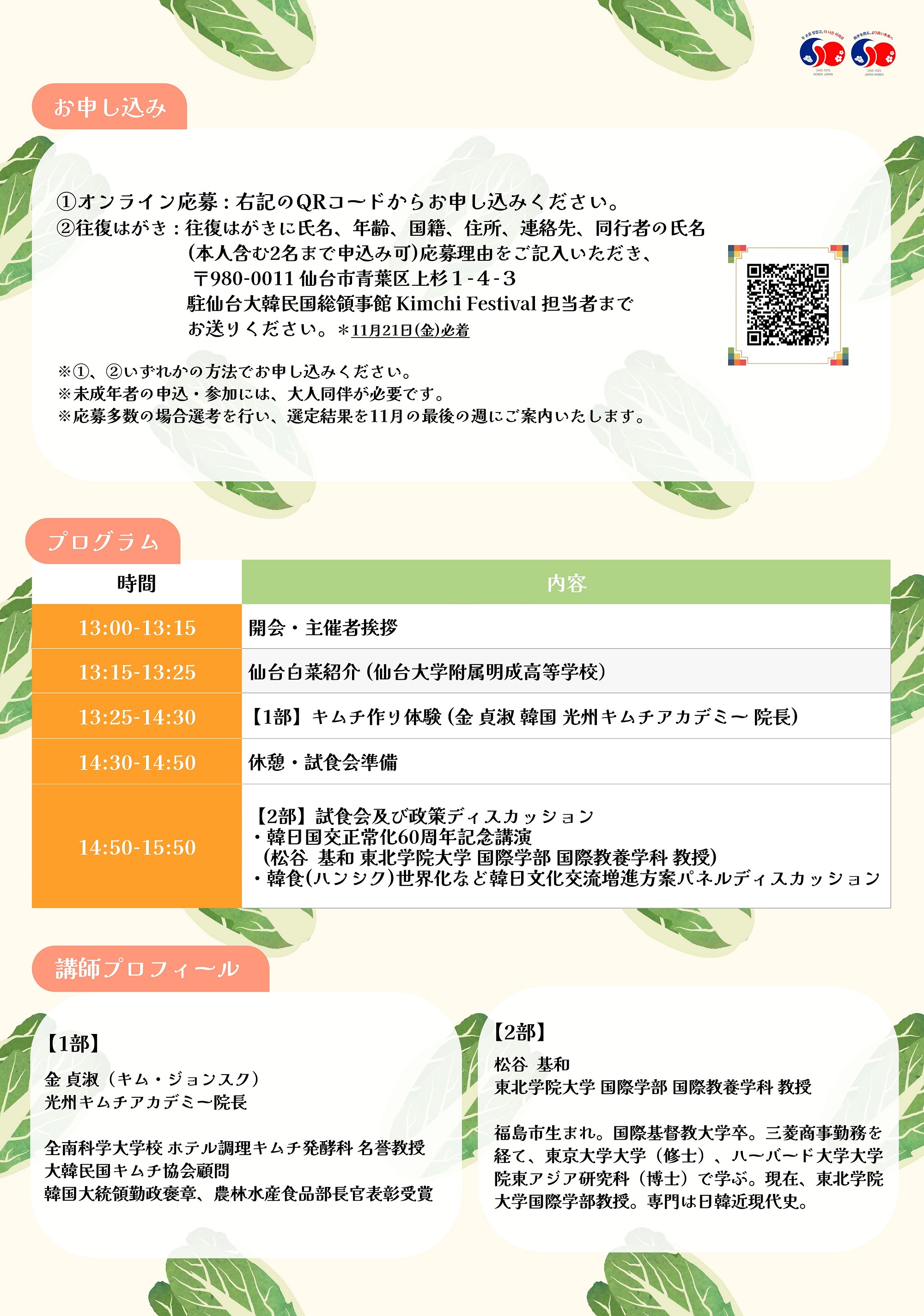 駐仙台大韓民国総領事館 Kimchi Festival 担当者まで