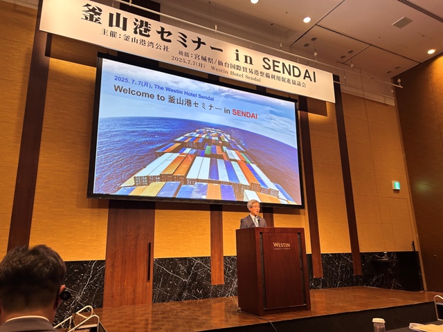 韓国の釜山港湾公社は7.7(月)、仙台市で「釜山港セミナーIn仙台」を開催し、釜山港の利用に関心のある企業を対象に最新情報提供および理解度向上のための講演会などを実施しました。キム·ヨーサプ総領事はセミナーの開会式に参席し、祝辞で釜山港利用督励と共に韓国-東北地方間の経済交流増進のための参加者たちの関心と協力をお願いしました。