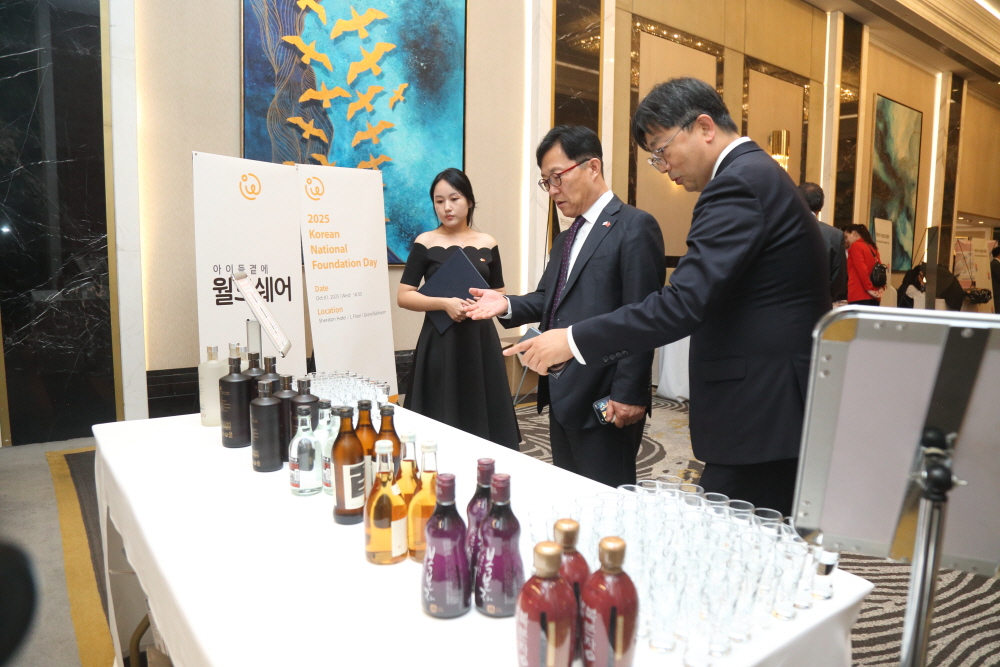 Дополнительным украшением приёма стала дегустационная зона с 8 видами традиционных корейских алкогольных напитков, подготовленная посольством, которая стала прекрасной возможностью глубже познакомиться с культурой и историей Кореи.