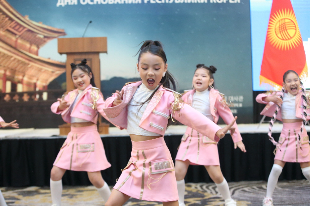 Культурная программа вечера была насыщенной и разнообразной: перед гостями выступил ансамбль Кыргызско-корейской ассоциации “Маннам” с традиционным барабанным представлением и танцем с цветами, состоялось выступление с традиционным корейским танцем с веерами. А также был специальный номер от самых юных участниц K-POP фестиваля в 2025 году — группы White Pink, что позволило объединить традиционную и современную корейскую культуру в одном вечере.