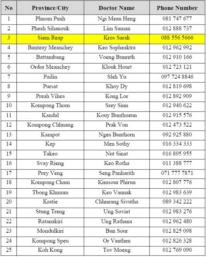 보건국 Siem Reap 담당자 연락처는 아래와 같습니다.