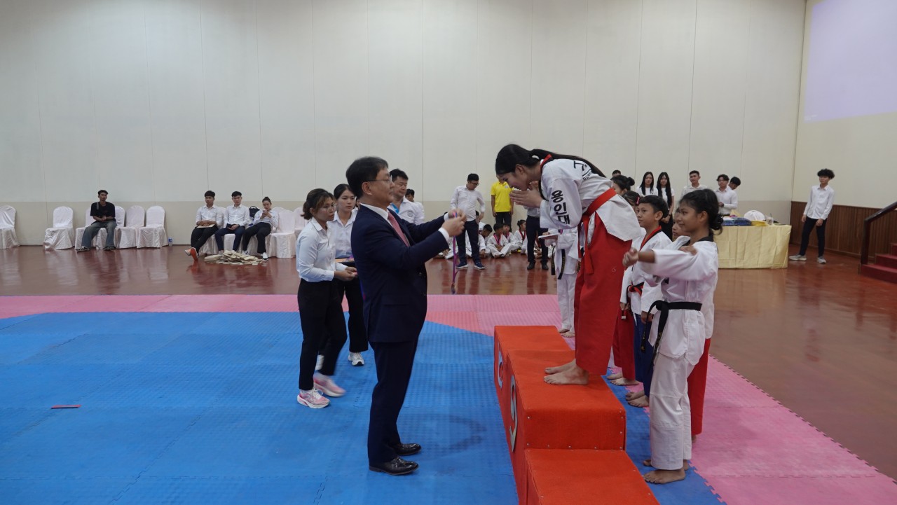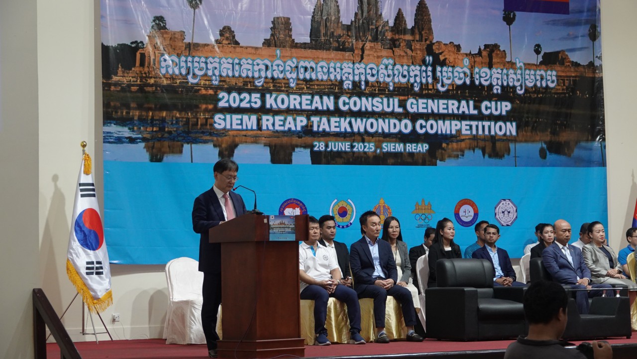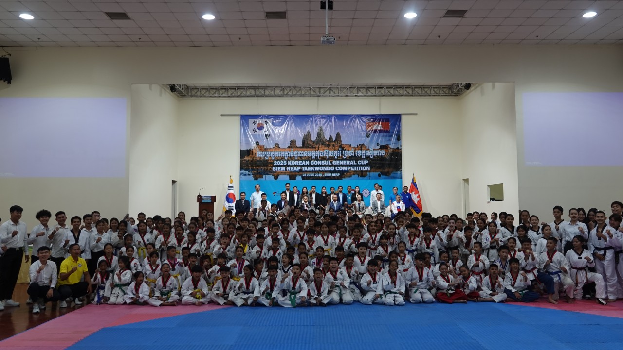 우리 공관은 6.28(토) 2025년 시엠립 분관장배 태권도 대회를 당지 Angkor Coex Event 홀에서 개최, 시엠립, 바탐방, 포이펫 지역 등에서 21개 클럽에서 약 300명의 수련 학생들 이 참가하여 기량을 겨루었습니다.