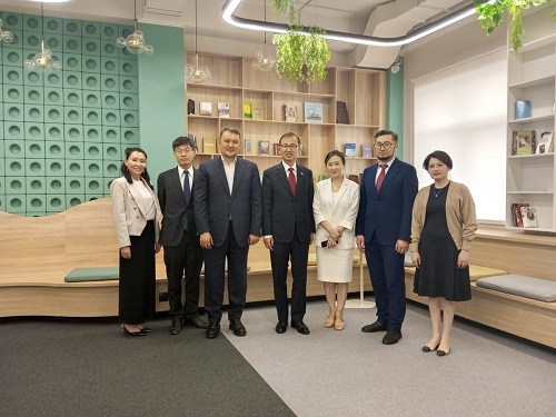 조태익 대사는 Talgat Narikbayev 이사장의 초청으로 7월 12일(수) Maqsut Narikbayev KazGUU 대학을 방문하고, KazGUU 대학과 한국(대학 및 대사관) 간 교류 협력 방안 등에 대해 협의하는 한편, 2022년에 한국국제교류재단 지원으로 설치한 ‘코리아 코너’ 등 교내 주요 시설을 시찰하였습니다.