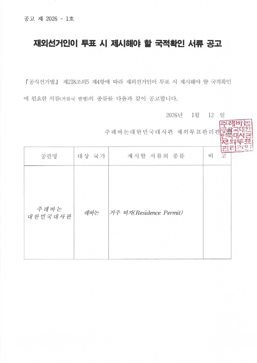재외선거인이 투표 시 제시해야 할 국적확인 서류 공고