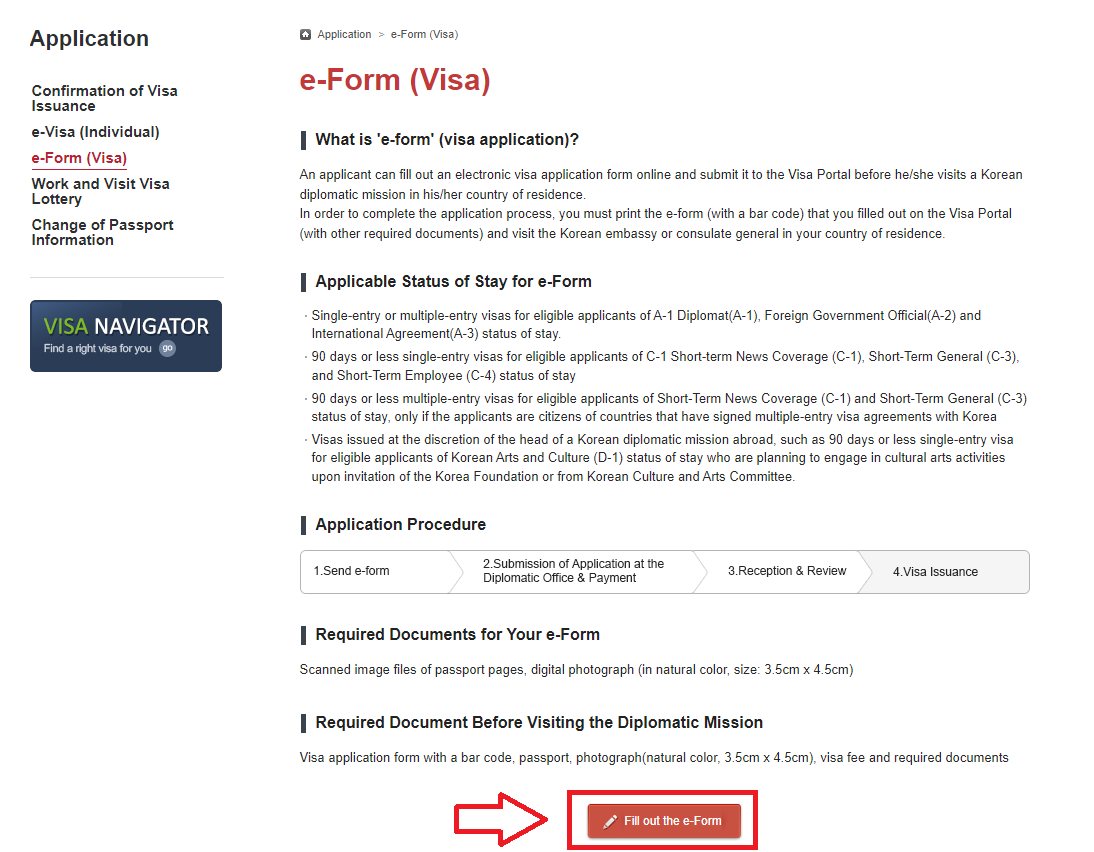 3. When a new page opens, click the Red [Fill out the e-form] button.