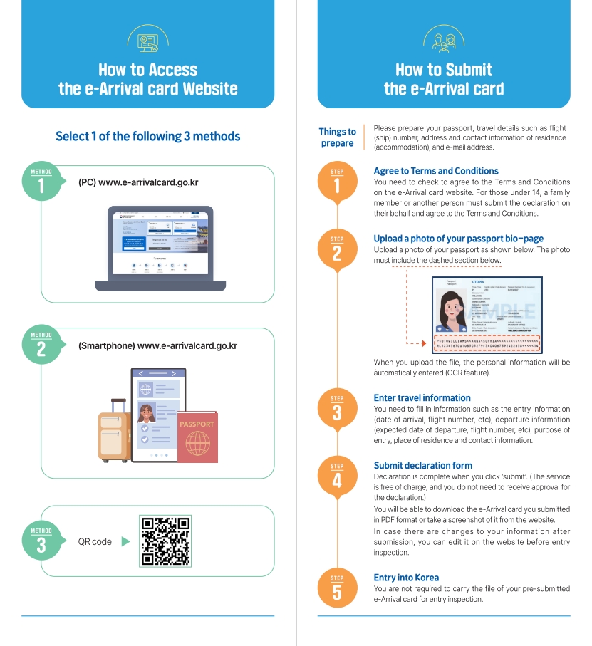 Sākot ar 2025. gada 24. februāri, tiks ieviesta e-Arrival karšu sistēma. Ārvalstu pilsoņi, kas plāno ieceļot Korejas Republikā, savu ierašanās deklarācijas veidlapu varēs iesniegt tiešsaistē iepriekš, nevis iesniegt to imigrācijas procesa laikā.