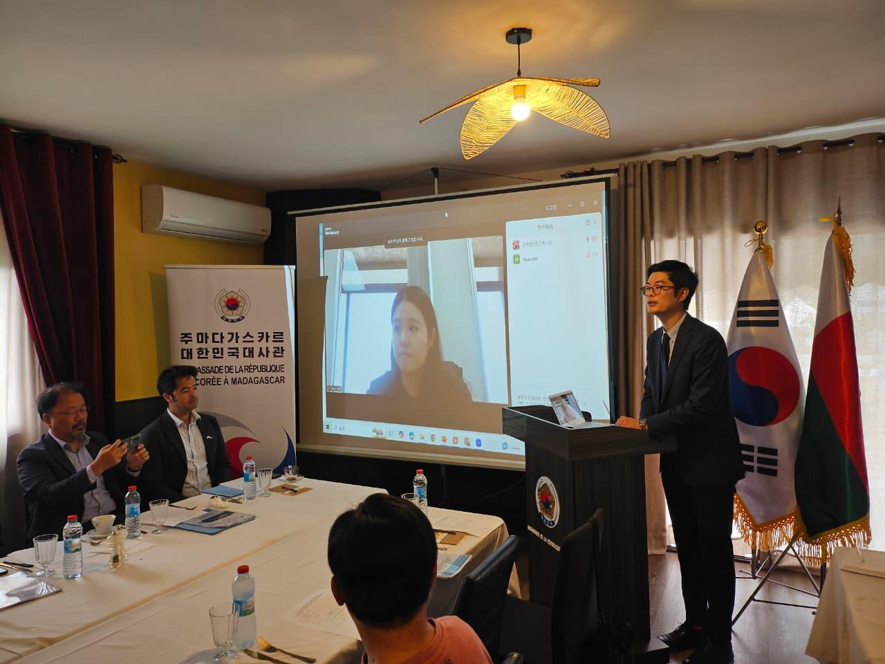 금번 세미나에는 우리나라의 아프리카 최대 직접투자 사업인 암바토비 프로젝트 대표단이 참석, 암바토비사의 CSR 모범사례를 공유하였으며, 코트라 남아공무역관 임현정 과장이 화상으로 참여하여 우리 정부 및 KOTRA 차원의 CSR 지원정책을 소개하였습니다. 아울러 성웅 대사관 참사관은 마다 정부의 최신 CSR 관련 정책 및 법령을 안내하였습니다.