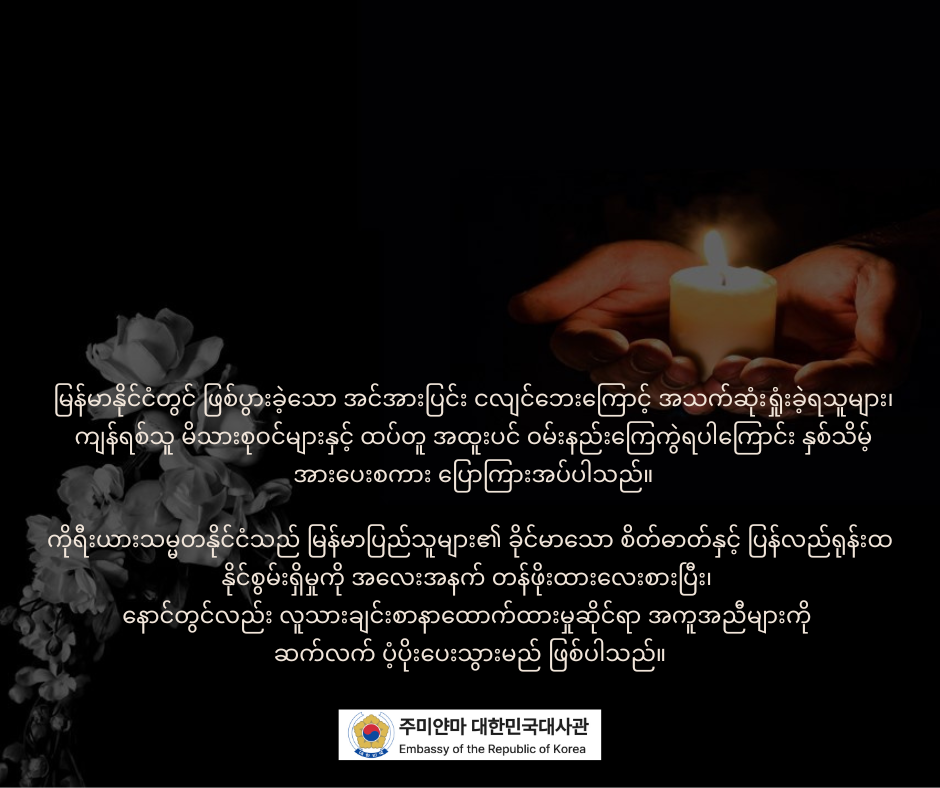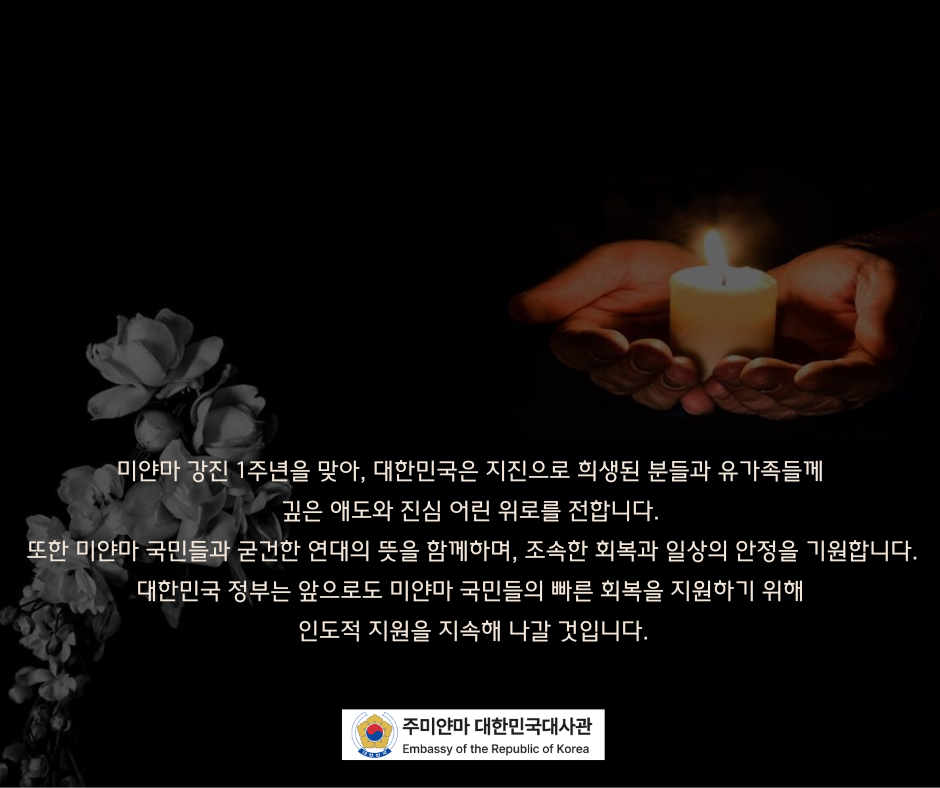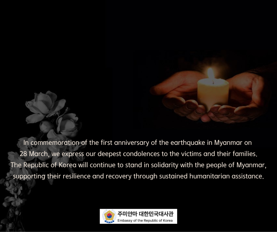 미얀마 강진 1주년, 희생자 추모 및 위로의 메시지