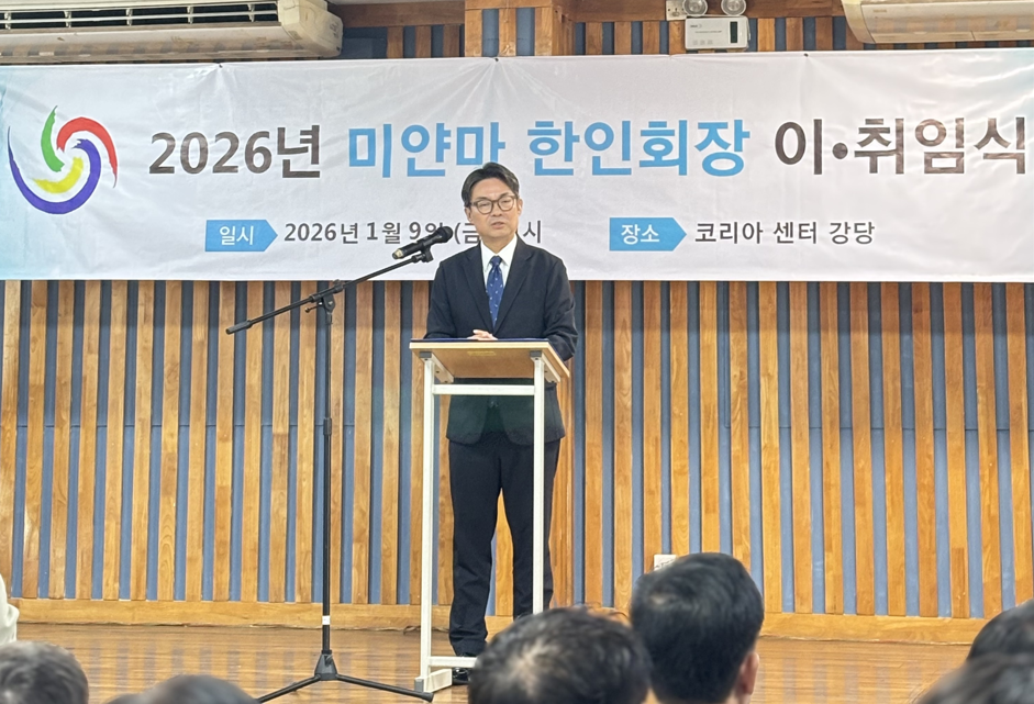 우리 대사관 배병수 대사는 1.9.(금) 코리아센터 강당에서 개최된 재미얀마 한인회장 이 •︎ 취임식 행사에 참석하였습니다.