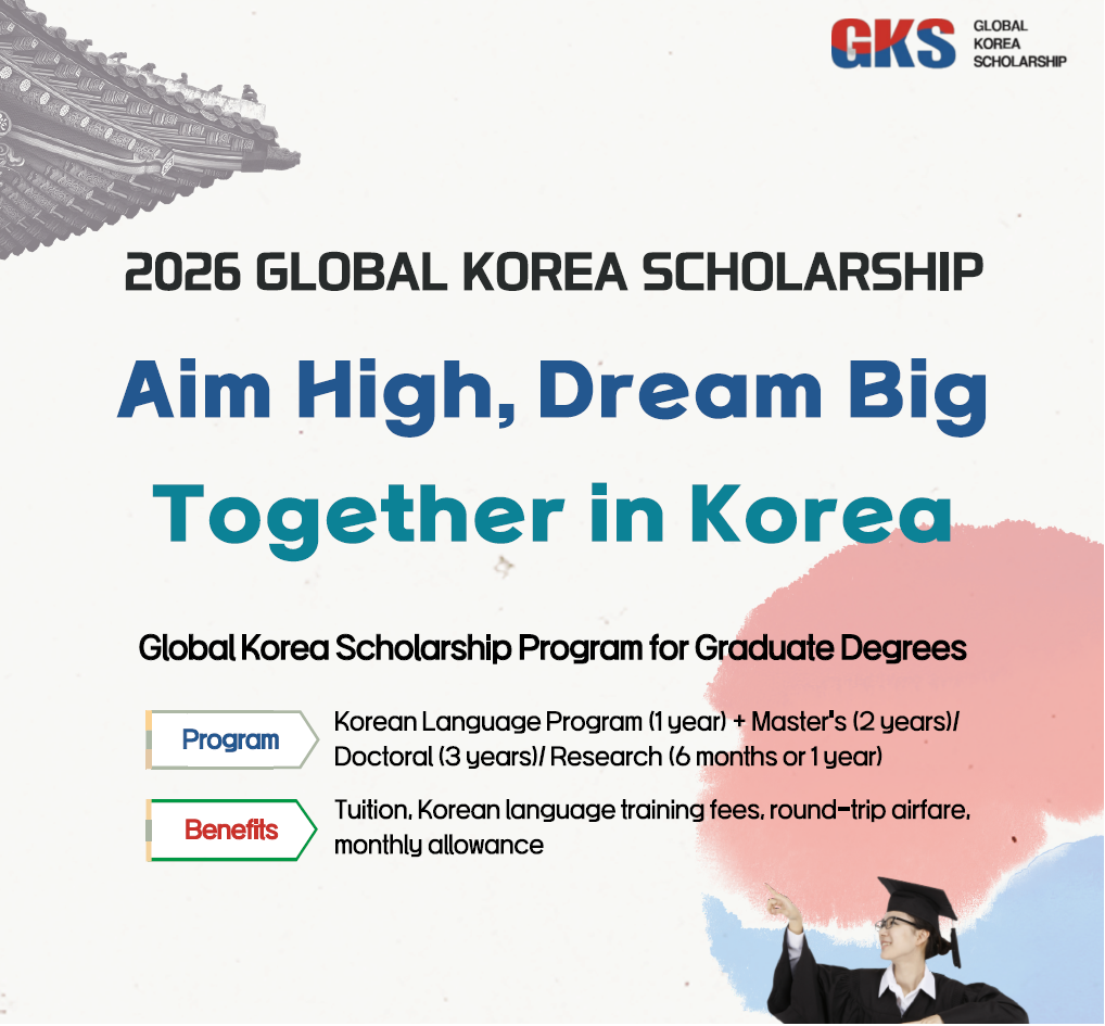 The Embassy of the Netherlands announces the following regarding the 2026 Global Korea Scholarship for Foreigners:
