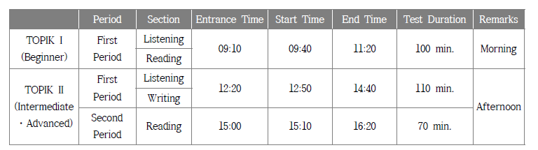※ Please note that the requested special arrangements are not guaranteed as it will be considered by the TOPIK head office under the international TOPIK policy.