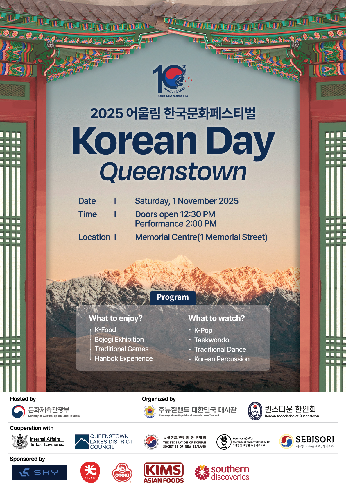 Experience the vibrant charm of Korea at the Korean Day in Queenstown, held in New Zealand’s premier tourist city, Queenstown!