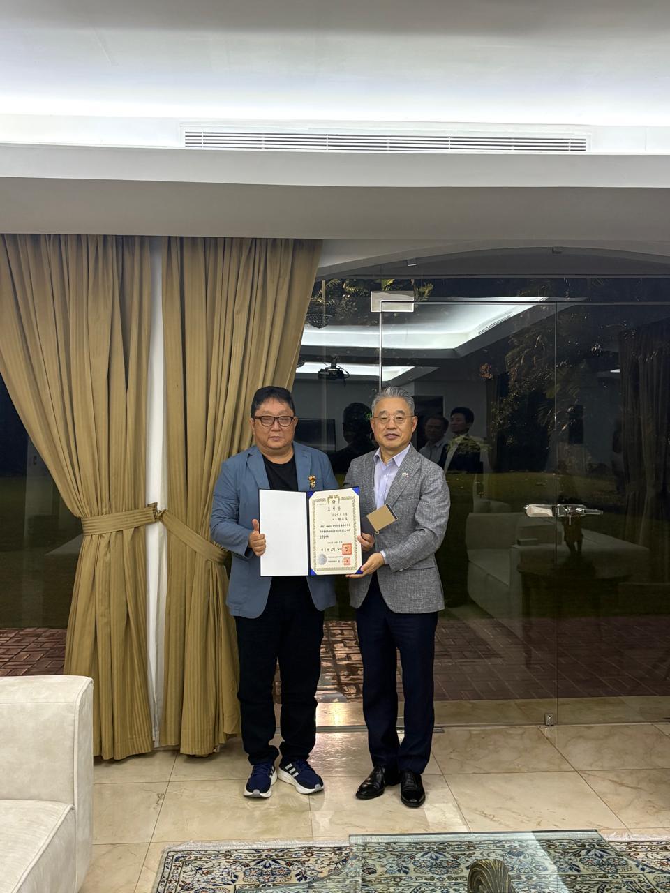한병진 대사는 11.26(수) 한인회장단 참석하에 세계 한인의 날 계기 유공 동포 포상자로 선정된 현종호 전회장에 대한 대통령 표창 전수를 하였습니다. 끝.