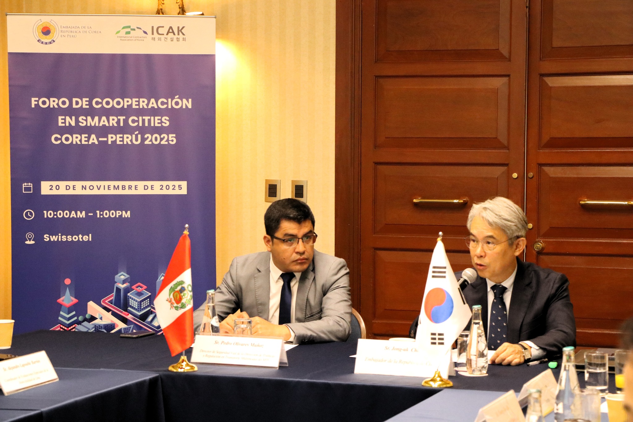 El jueves 20 de noviembre de 2025, el Embajador Choi Jong-Uk asistió al Foro de Cooperación en Ciudades Inteligentes Corea–Perú, coorganizado por la Embajada de la República de Corea en Perú y la Asociación Internacional de Contratistas de Corea (ICAK).
