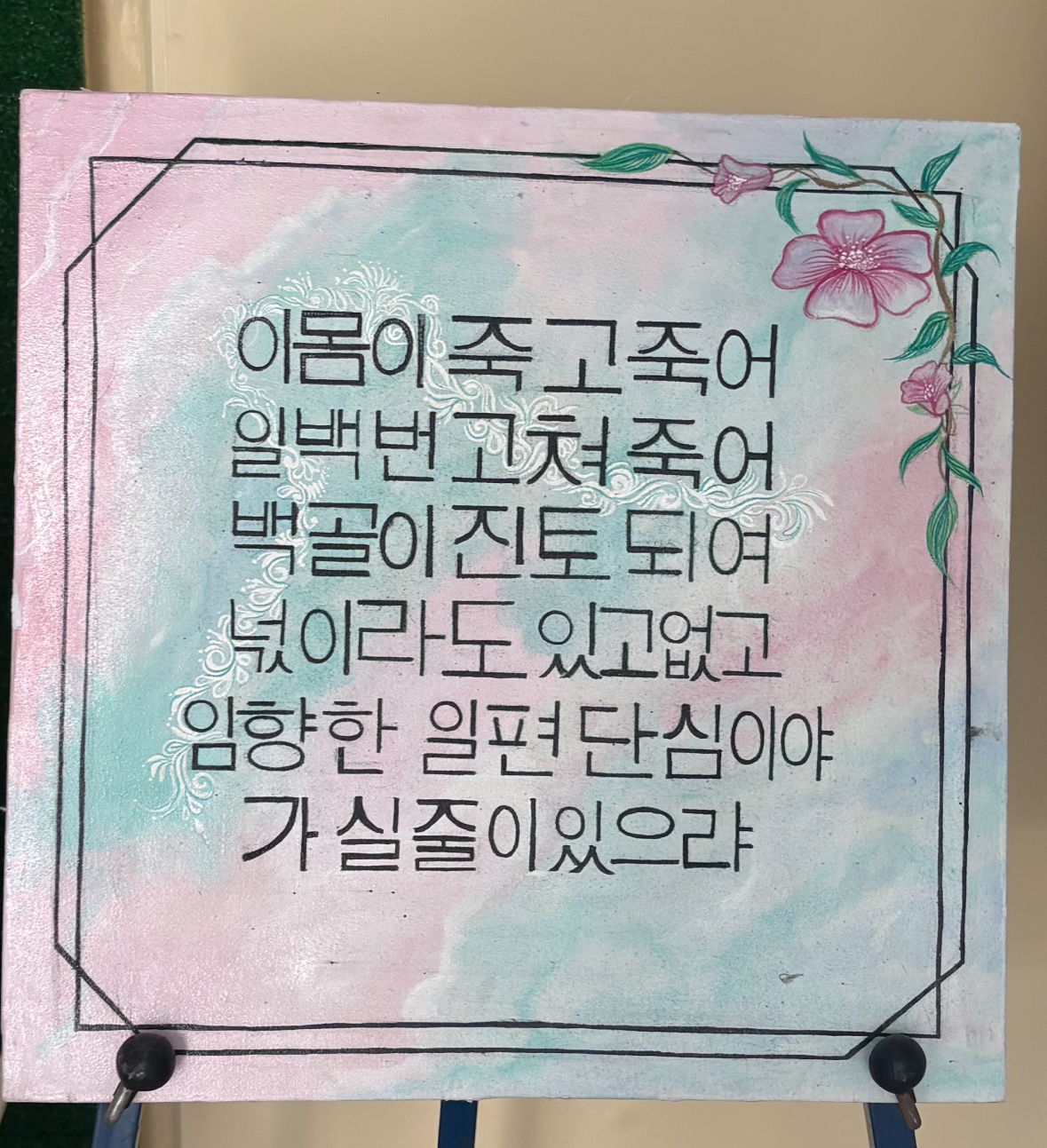 - Consolation Prize Winner(1) Mr. Hamna Jabeen : He skillfully transcribed a renowned line from Jeong Mong-ju’s “Dansim-ga” (Song of Devotion) in a classical Korean calligraphic style, demonstrating refined technique and deep respect for Korea’s literary heritage.