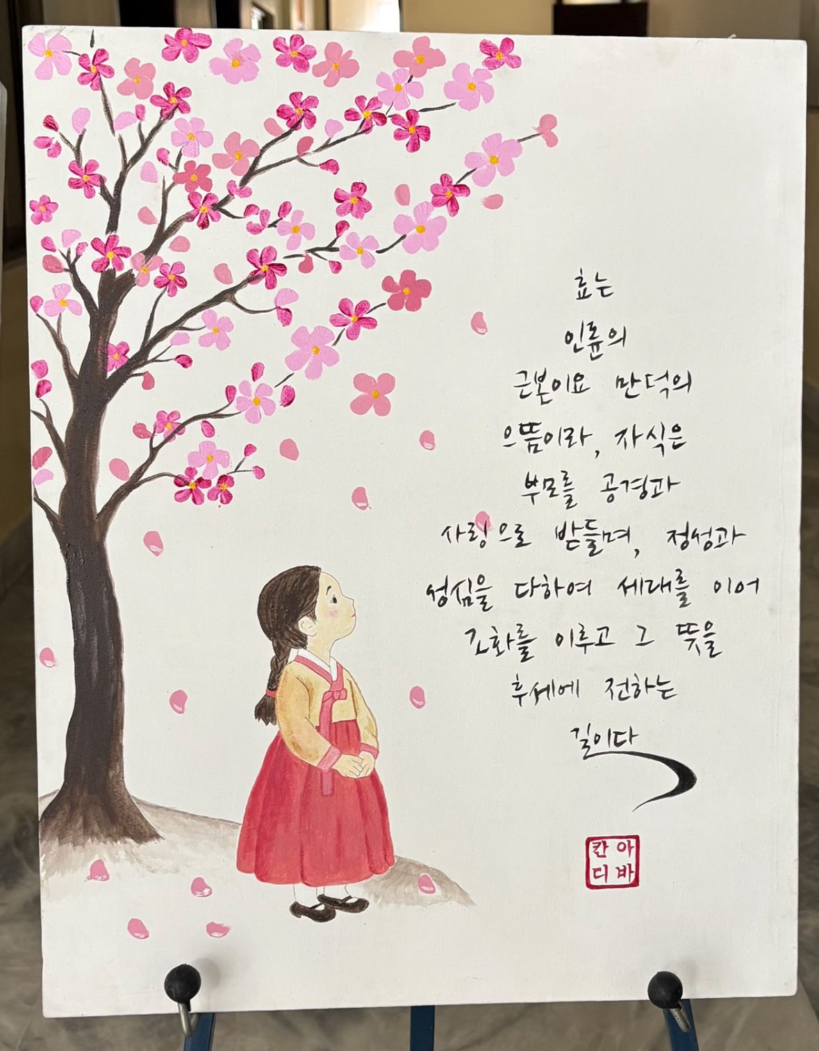 - Third Prize Winner Ms. Areeba Mehreen : She created an original poem on reflections about life, integrating traditional Korean architectural and cultural motifs into her calligraphic design.
