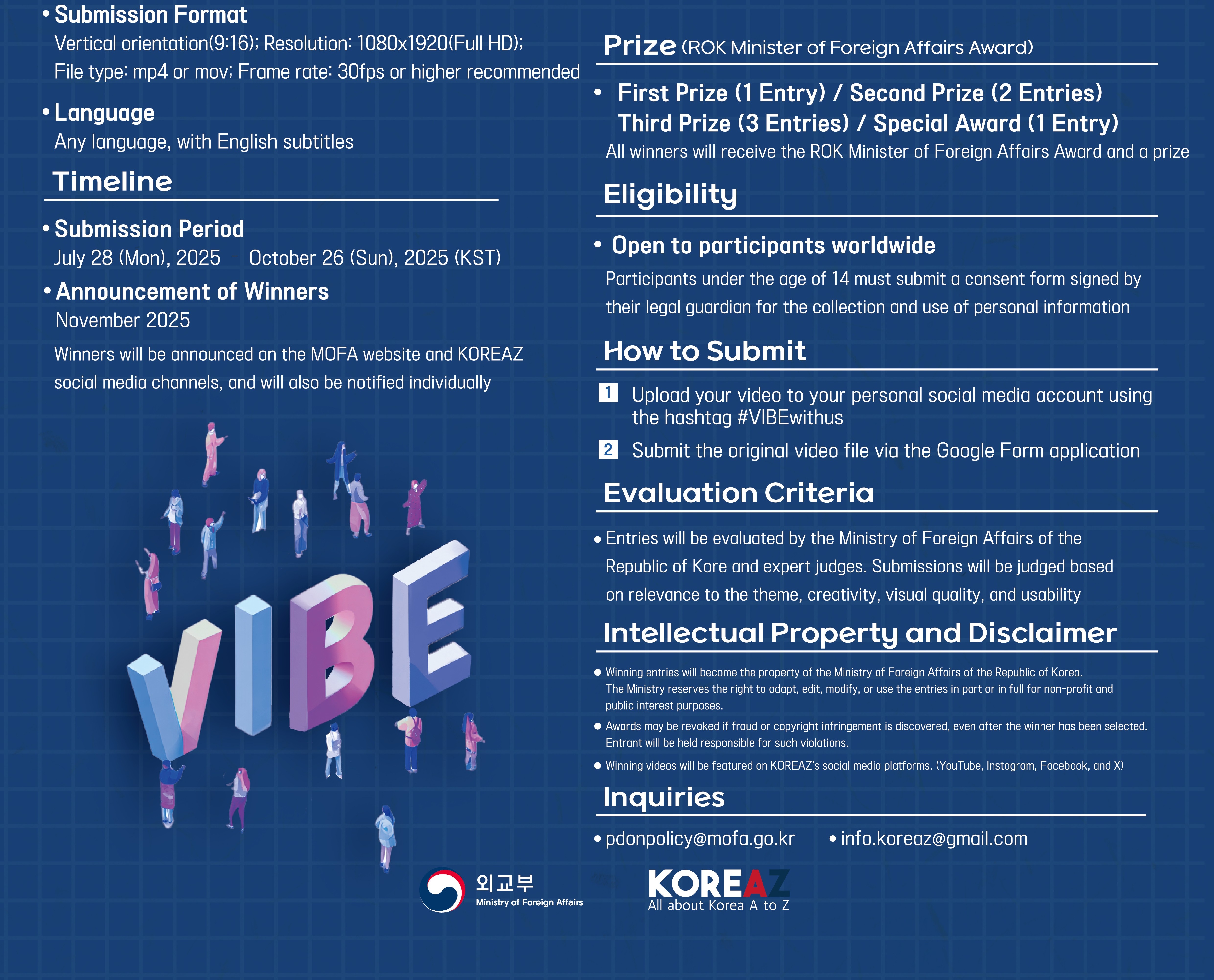 - Winning videos will be featured on KOREAZ’s social media platforms(YouTube, Instagram, Facebook, and X).