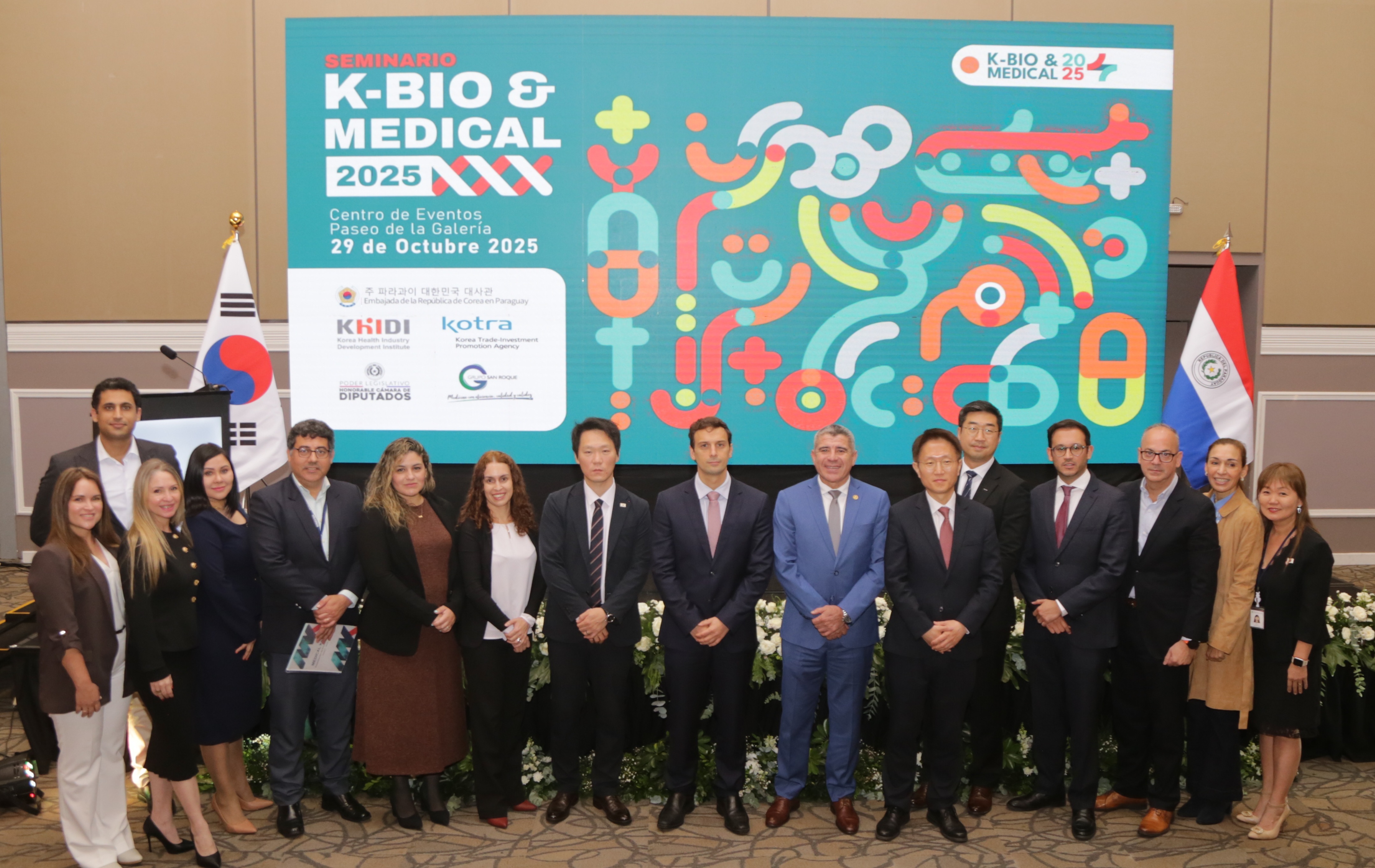 우리 대사관은 10.29(수), Paseo La Galeria 에서 우리 보건의료 기업의 파라과이 시장 진출을 지원하기 위한 K-Bio & Medical 2025를 개최하였습니다. 파라과이 하원 산업통상위원장 "Hector Figueredo" 의원, 보건부(MSPBS), 식품의약청(DINAVISA) 등 정부 관계자를 비롯해, 파라과이 최대 의료기업 Grupo San Roque 대표 등 산업계 및 의료인 130여명이 참여하였습니다.
