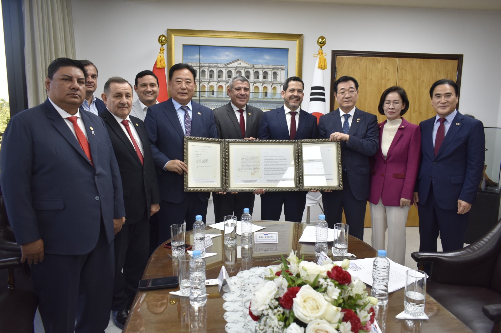 한국-파라과이 의원친선협회(단장 어기구 의원) 소속 등 우리 국회 대표단(민홍철 의원, 이인선 의원, 김종양 의원 등)은 11.19(수) 파라과이 하원의장 라울 라또레(Raúl Latorre) 의장을 면담하였습니다.