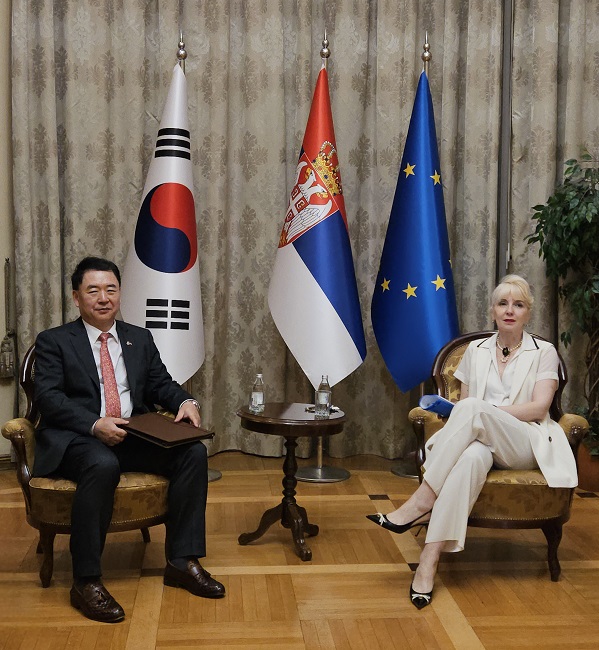 U sredu, 11. juna, NJ.E. Hjong Te Kim sastao se sa ministarkom unutrašnje i spoljne trgovine Jagodom Lazarević. Ambasador Kim je izrazio nadu da će doći do napretka u pregovorima o Sporazumu o ekonomskom partnerstvu između Koreje i Srbije, čiji je početak najavljen u septembru 2024. godine, istakavši da će ovaj Sporazum poslužiti kao prilika za još aktivnije poslovanje korejskih kompanija u Srbiji i da će dodatno otvoriti put za dublju saradnju između dve zemlje u budućnosti. Ministarka Lazarević izjavila je da bi tehnološka sposobnost i iskustvo Koreje bili od velike pomoći Srbiji, koja teži strukturnoj transformaciji usmerenoj na istraživanje i razvoj (R&D) i tehnološku industriju, izrazivši nadu da će se oblasti ekonomske saradnje između dve zemlje proširiti na osnovu pregovora o Sporazumu o ekonomskom partnerstvu.