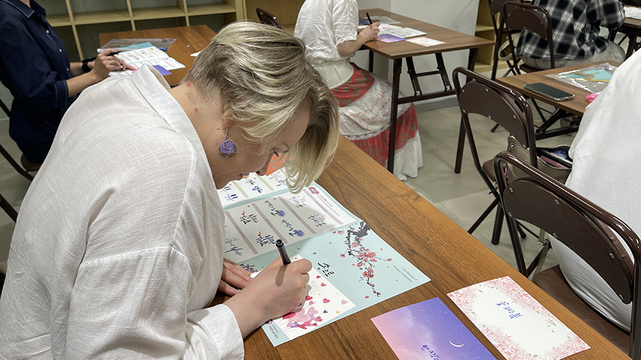 주러시아한국문화원은 7월 16일 한글캘리그라피 체험 행사를 개최하였습니다. 국립 한글 박물관에서 지원한 한글캘리그라피 체험 교구 ‘손으로 꽃피우는 한글’을 사용하여 진행하였습니다.