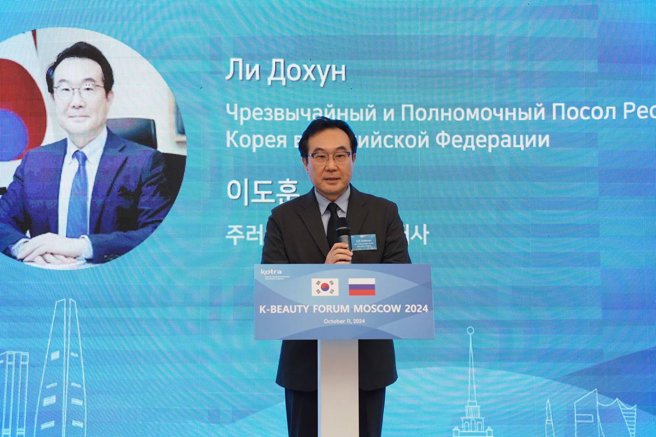 11 октября(пт) Посол Ли Дохун принял участие в форуме K-Beauty, который прошел в ТЦ «Крокус Сити Молл», где выступил с приветственной речью, а также посетил соседний выставочный зал, чтобы поддержать участвующие корейские компании.