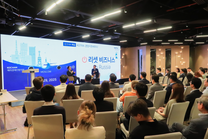 29 мая(чт) Посол Ли Дохун принял участие в качестве специального гостя в коммуникационном мероприятии для бизнеса, организованном KOTRA. На полях консультации посол напрямую обсудил с предпринимателями текущую международную ситуацию, включая мирные переговоры, оценку и перспективы нынешней экономической ситуации России и меры двустороннего сотрудничества.