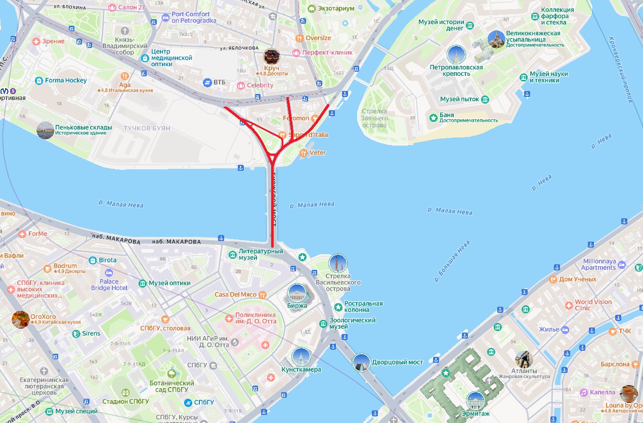 ─︎자알라기체스키 골목(Зоологический пер.)부터 크론베르크스키 대로(Кронверкский пр.) 사이의 미트닌스카야 강변대로(наб. Мытнинская)