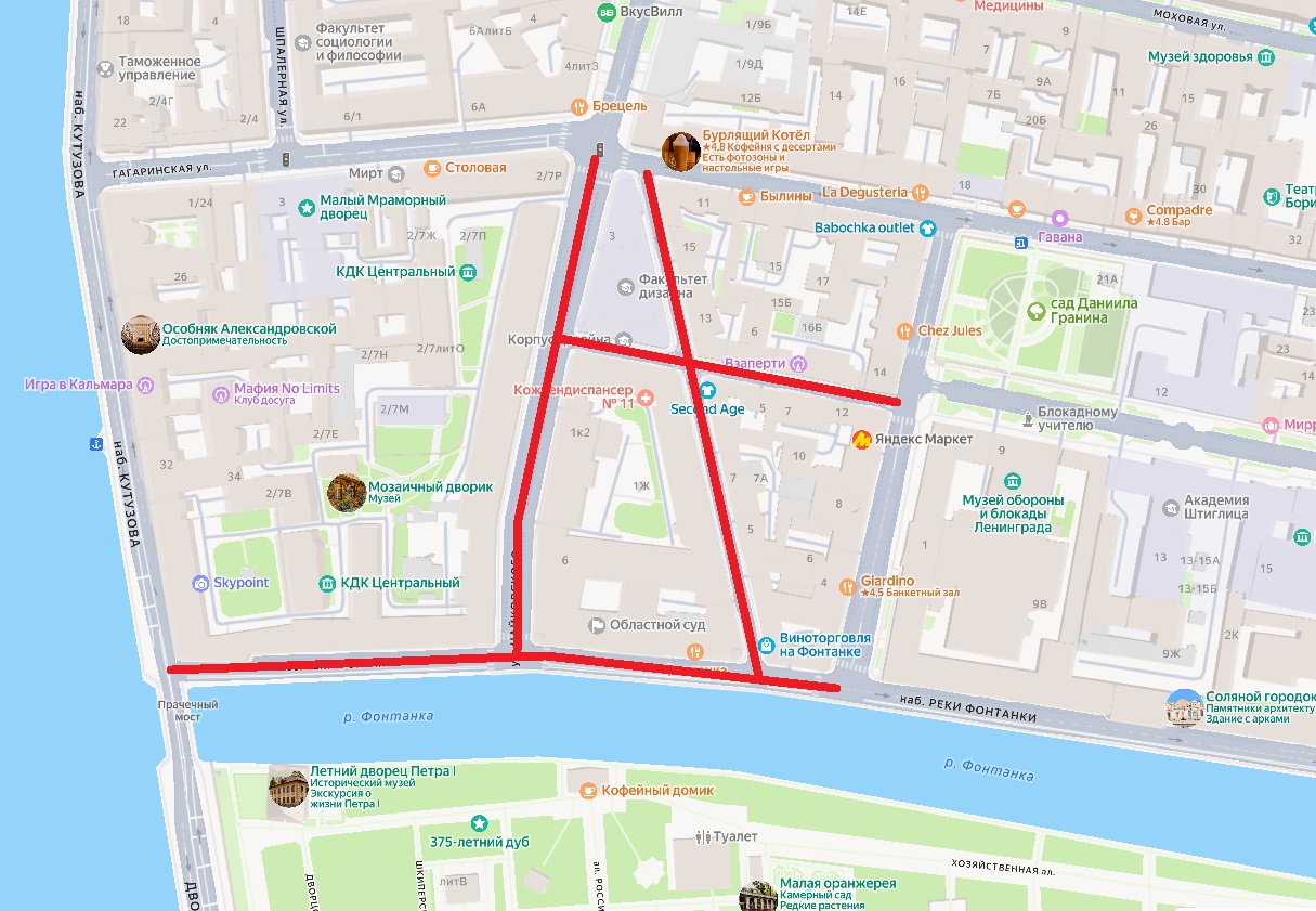 ─︎가가린스카야 거리(Гагаринская ул.)부터 폰탄카 강변대로(наб. р. Фонтанки) 사이의 차이콥스키 거리(ул. Чайковского)