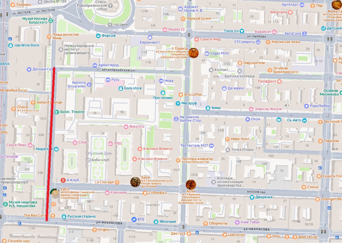 ─︎코롤렌코 거리(ул. Короленко)부터 네크라소바 거리(ул. Некрасова) 사이의 아르틸레리스카야 거리(ул. Артиллерийская)