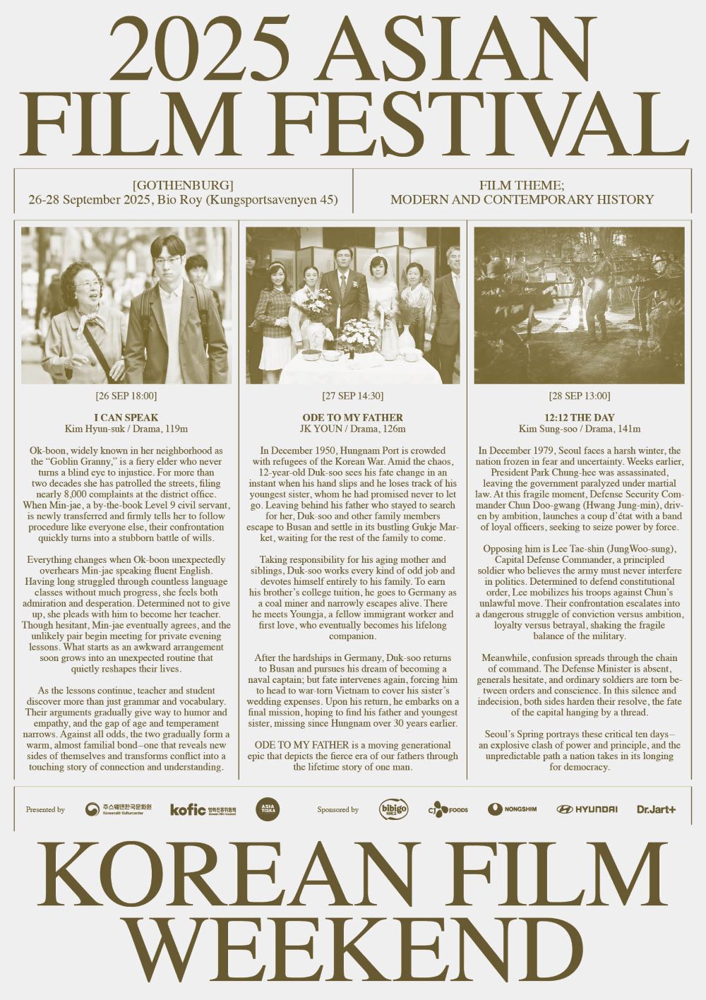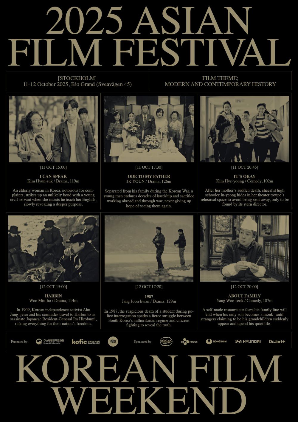 The Koreanskt Kulturcenter is pleased to present “2025 Asian Film Festival: Korean Film Week,” taking place this coming September and October in Gothenburg and Stockholm, in commemoration of the 80th anniversary of Korea’s Liberation.