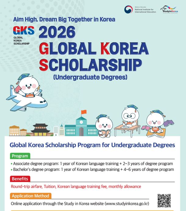 The National Institute for International Education (NIIED) under the Ministry of Education of the Republic of Korea is inviting talented Singaporeans to apply for the 2026 Global Korea Scholarship (GKS) for Undergraduate Degrees.