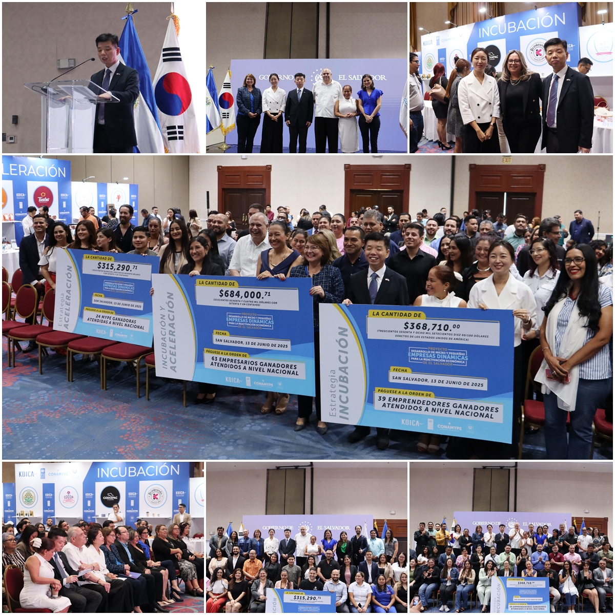 El pasado viernes 13 de junio, el Señor Embajador Kwak Taeyeol, participó en la ceremonia de entrega de fondos no reembolsables para el fortalecimiento de emprendimientos y MYPE innovadoras, cuyos planes de negocios fueron seleccionados mediante un proceso técnico de evaluación en el marco del proyecto “Desarrollo de Micro y Pequeñas Empresas Dinámicas para la Reactivación Económica de El Salvador” (KOICA–PNUD).