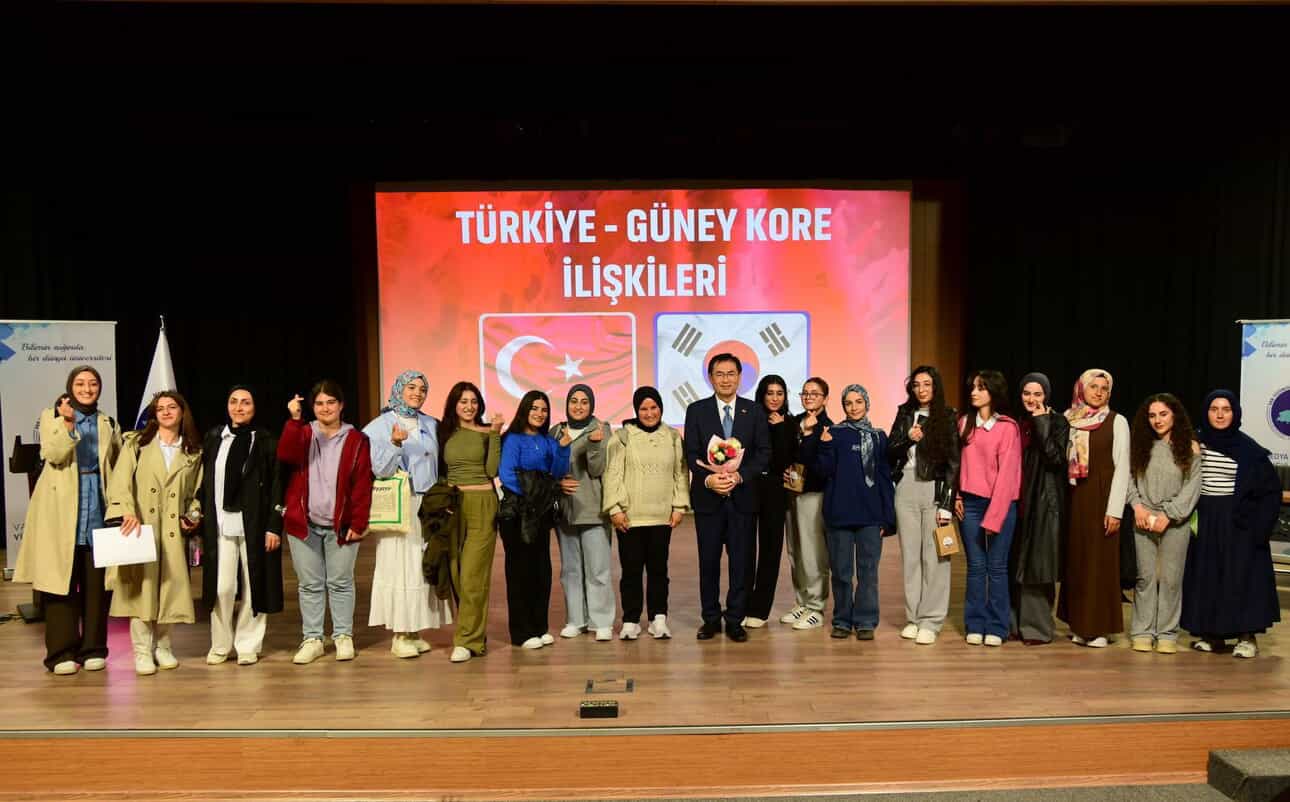 Ayrıca Büyükelçi JEONG, üniversitenin akademik kadrosu ve öğrencilerinden oluşan yaklaşık 300 kişilik bir topluluğa “Kore-Türkiye İlişkileri: Geçmiş, Bugün ve Gelecek” başlıklı bir konferans verdi. Konuşmasında, “kardeş ülke” olarak tanımlanan Kore ve Türkiye arasındaki ilişkilerin daha somut iş birliği alanlarına taşınması gerektiğini vurguladı ve öğrencilerin iki ülke arasındaki dostluğun geleceğinde önemli bir rol oynayacaklarına inandığını ifade etti.