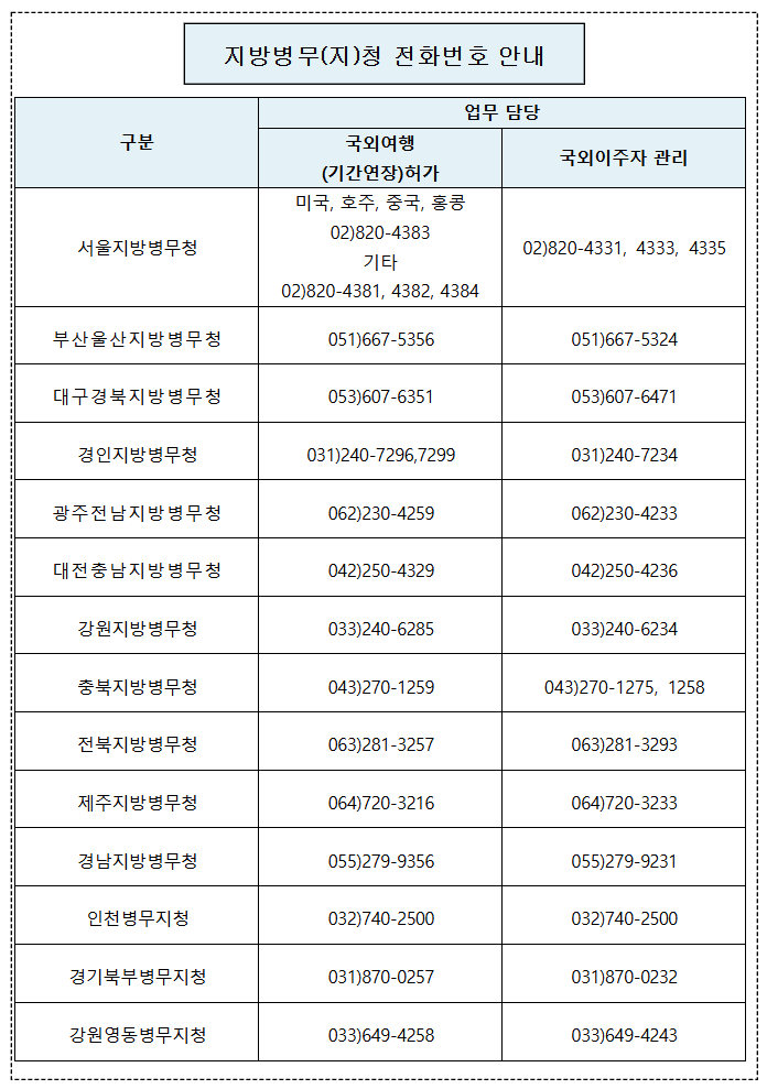 1월 1일부터 25세가 되는 해 1월 15일까지 관할 지방병무청 또는 관할 재외공관에서 국외여행허가를 받아야 합니다.