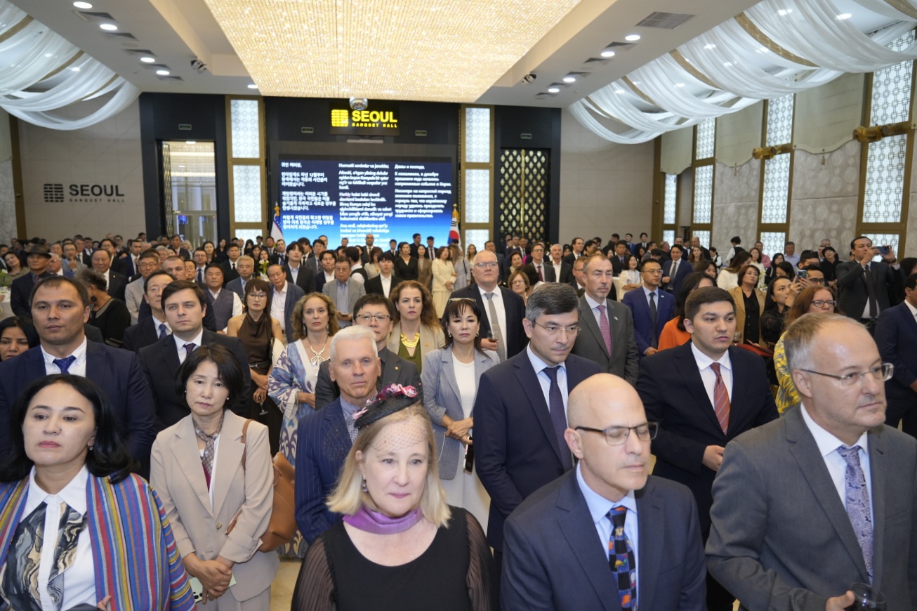 25 сентября (чт.) т.г. во Дворце корейской культуры и искусств в Ташкенте состоялся торжественный прием по случаю Дня основания государства и 77-й годовщины Вооруженных сил, на котором присутствовал Заместитель Премьер министра – Министр экономики и финансов Республики Узбекистан г-н Кучкаров Д. А., представители правительства, дипломатических миссий, корейской этнической диаспоры и граждане Республики Корея, всего около 450 гостей.