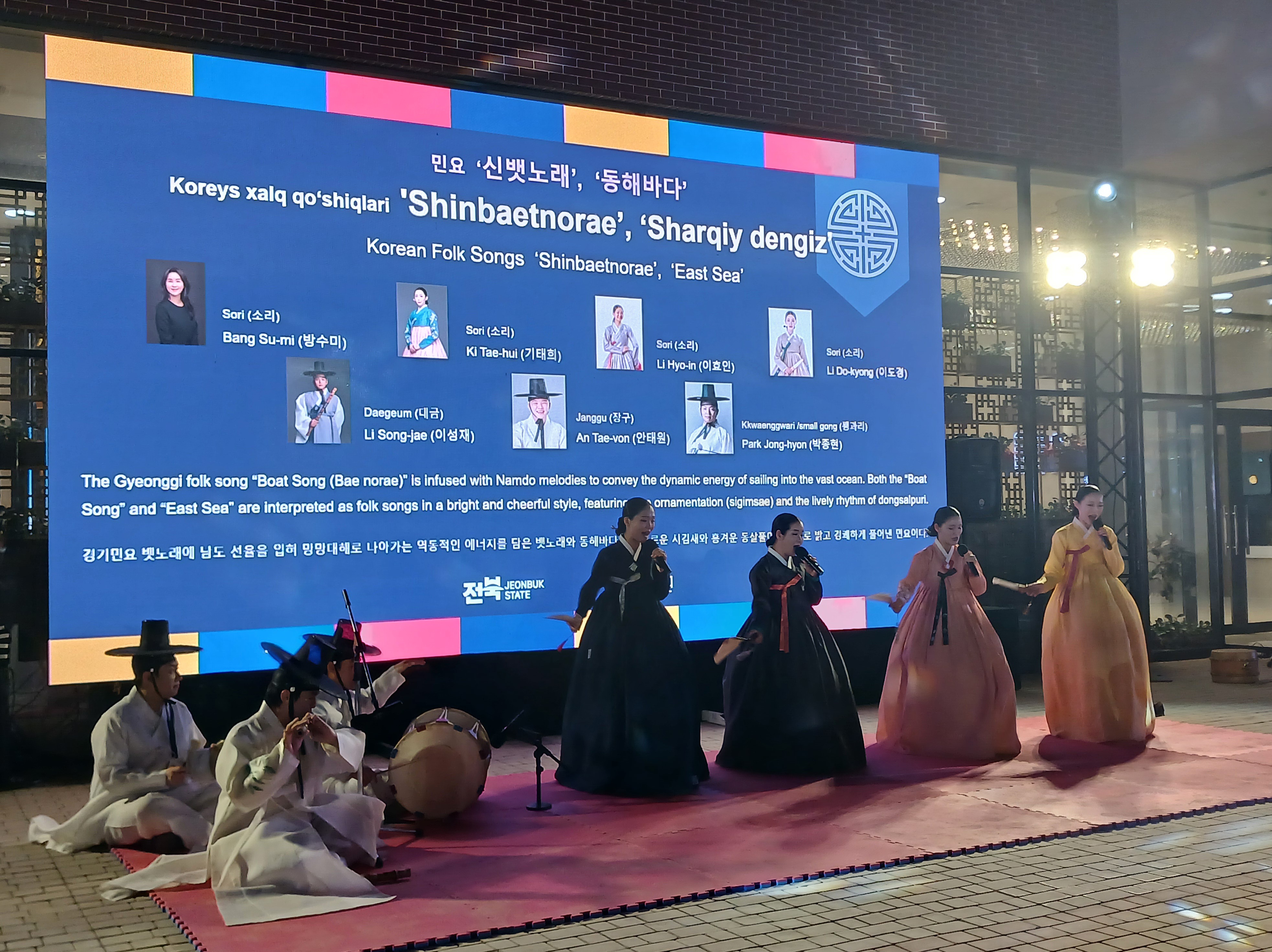 Кроме того, для гостей приготовили множество блюд корейской кухни - пульгоги, чапче, таккальби, дакканчжон и кимбап, а также была представлена корейская культурная программа, где выступили артисты хора «пансори» «Jeonju Pansori Choir» и танцевальная K-pop-группа DMZ.