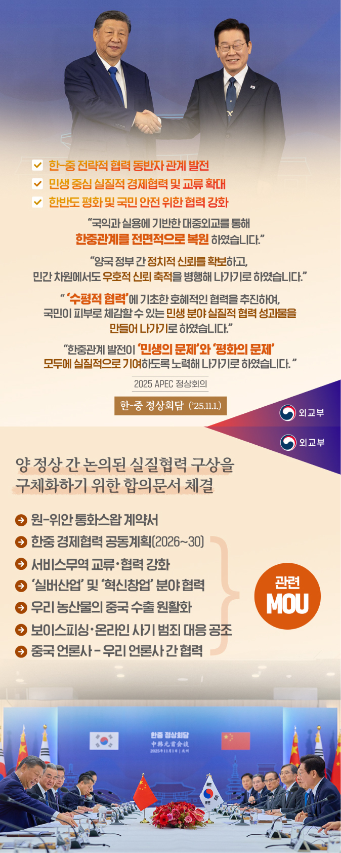 한중 정상 상호 국빈 방문 완성을 통한 전략적 협력 동반자 관계의 성숙한 발전 추진