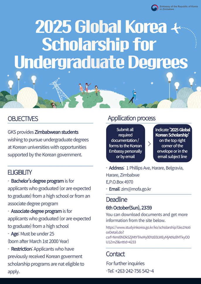 2025 Global Korea Scholarship for Undergraduate Degrees